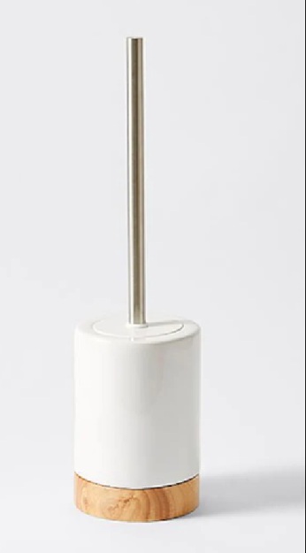· [For Toilet Brush] Hygienic & Complete: Includes a matching ceramic holder with drainage holes and a discreet wooden lid. The brush handle is wood, with durable, replaceable nylon bristles.