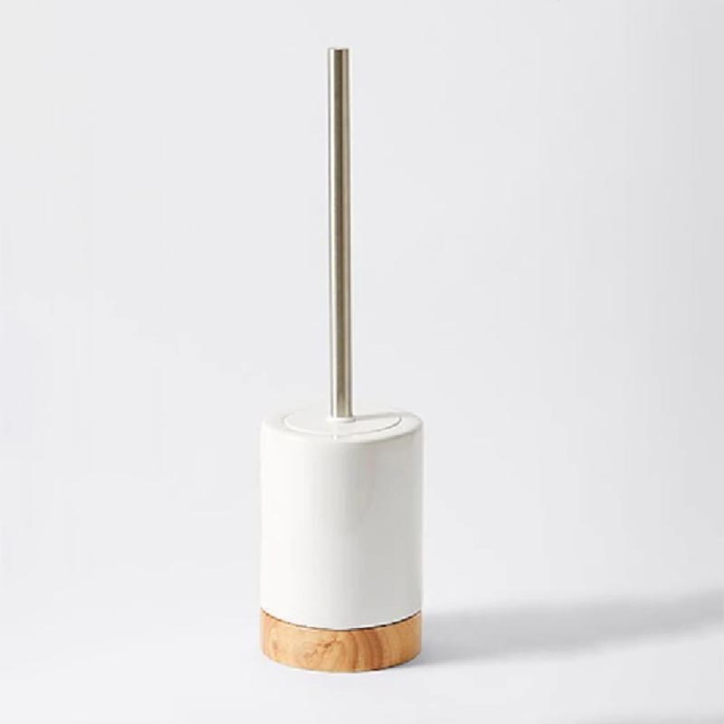 · [Para cepillo de baño]Higiénico y completo:Incluye un soporte de cerámica a juego con orificios de drenaje y una discreta tapa de madera. El mango del cepillo es de madera, con cerdas de nailon duraderas y reemplazables.