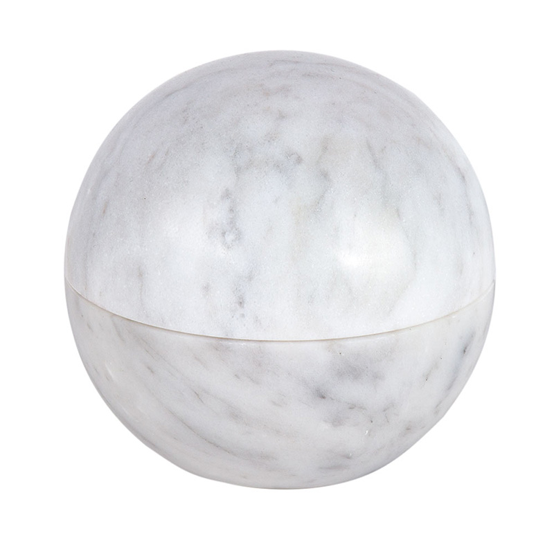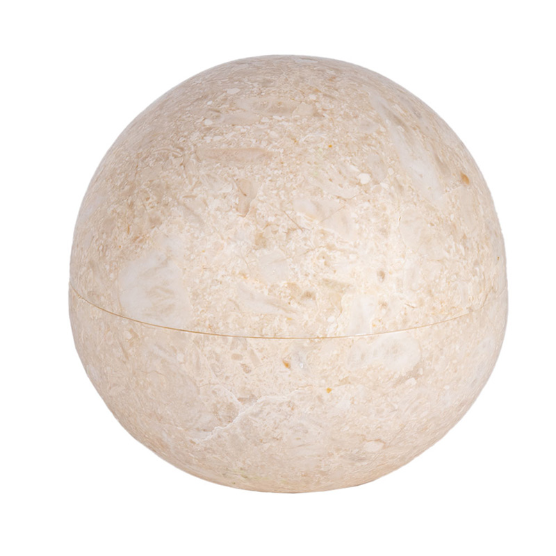 Diseño: Presentando una Con un diseño esférico y una tapa semicircular desmontable en la parte superior, la caja de mármol es una combinación perfecta de belleza y funcionalidad.