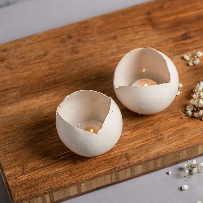 Handmade Ceramic Eggshell-Shaped Multi-Functional Decor Container (Tealight Holder & Succulent Planter)