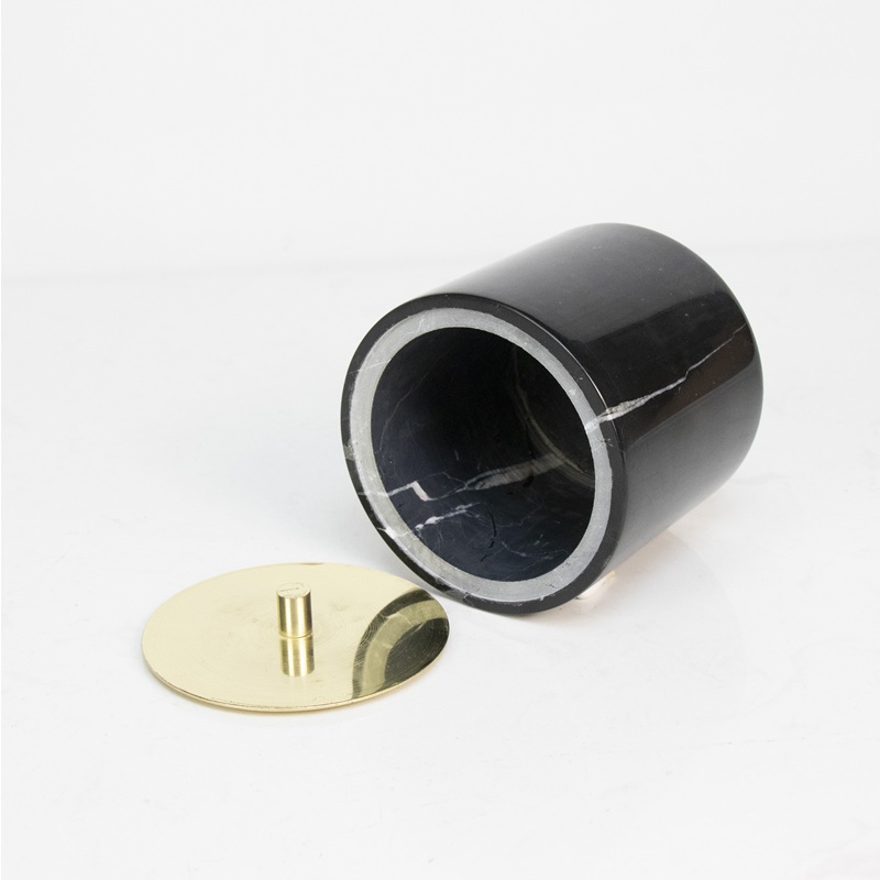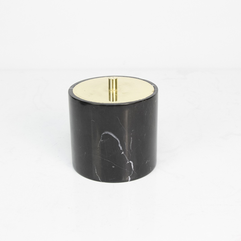 - Diseño:Cuerpo de mármol cilíndrico redondeado (veteado natural e irregular para una textura exclusiva); tapa galvanizada en oro rosa con una pestaña de tiro cilíndrica (agarre ergonómico): combina la calidez de la piedra natural con la sofisticación metálica moderna.