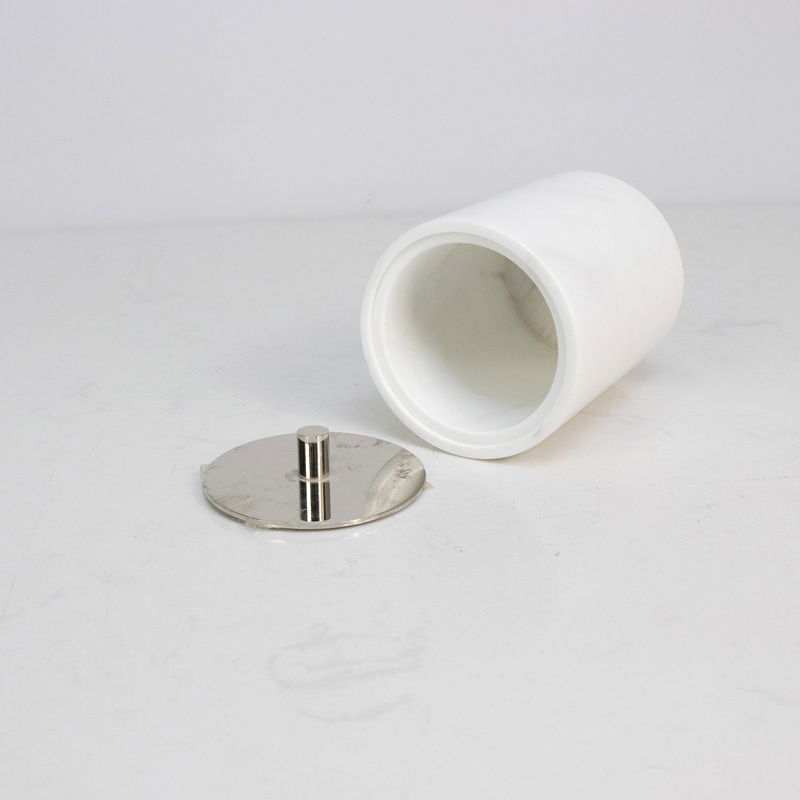 - FunciónAlmacenamiento a prueba de polvo para artículos pequeños (dulces, joyas, hojas de té); la superficie de mármol pulido resiste las manchas, mientras que la tapa de acero inoxidable asegura un uso duradero.